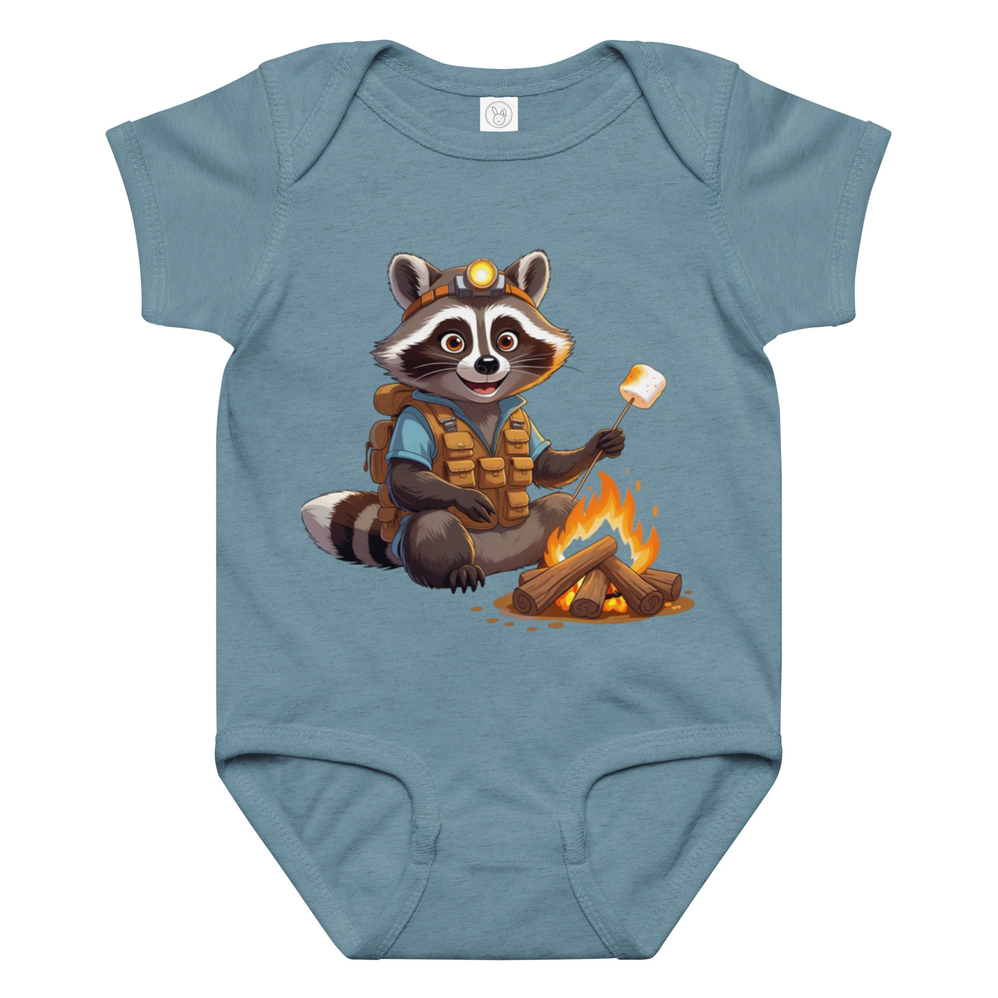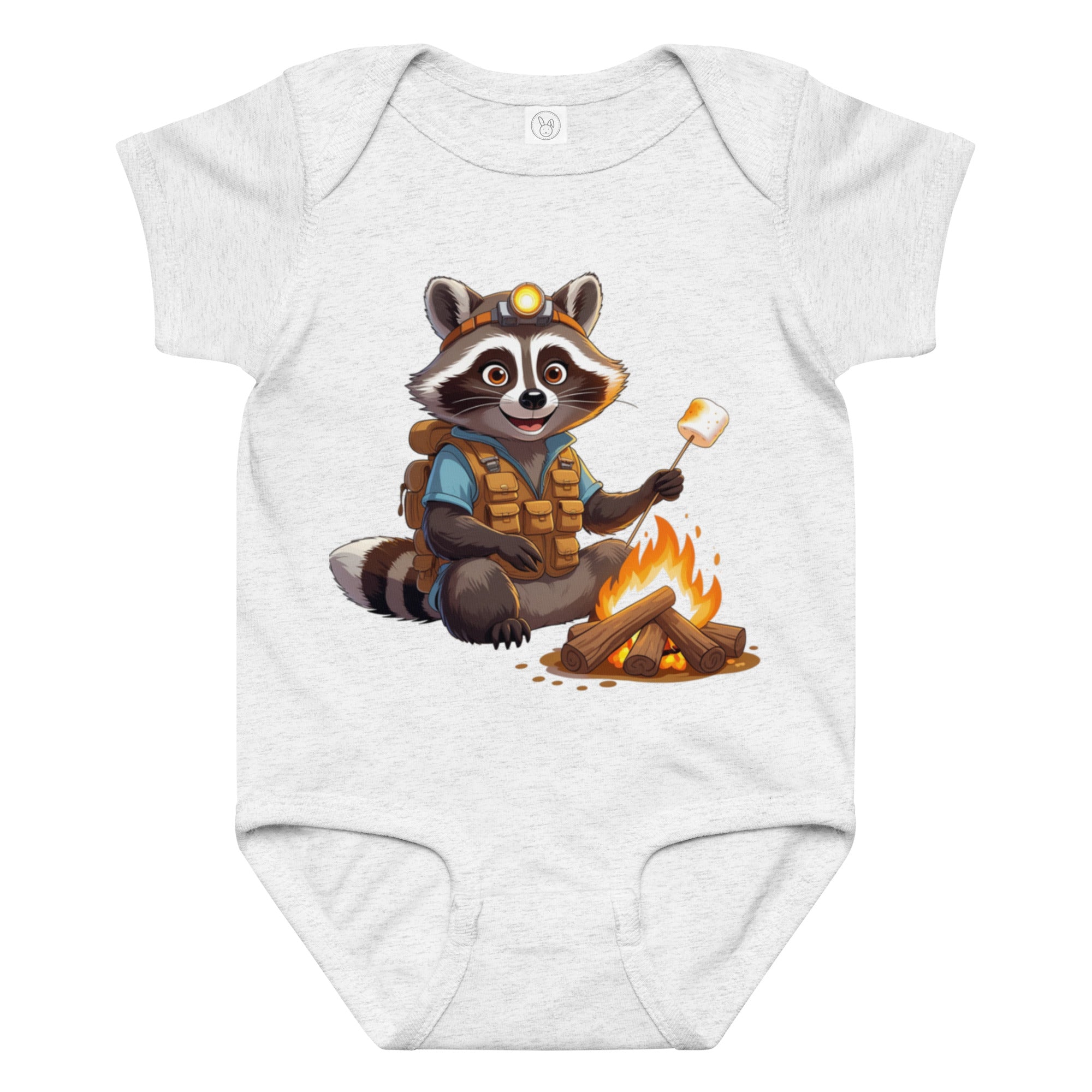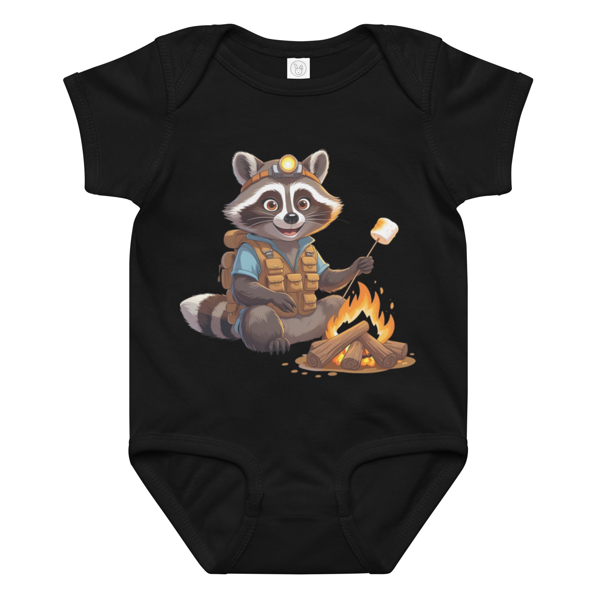 Spark some cozy vibes with the Campfire Raccoon baby bodysuit! Featuring a cute raccoon camper in a vest and headlamp,...