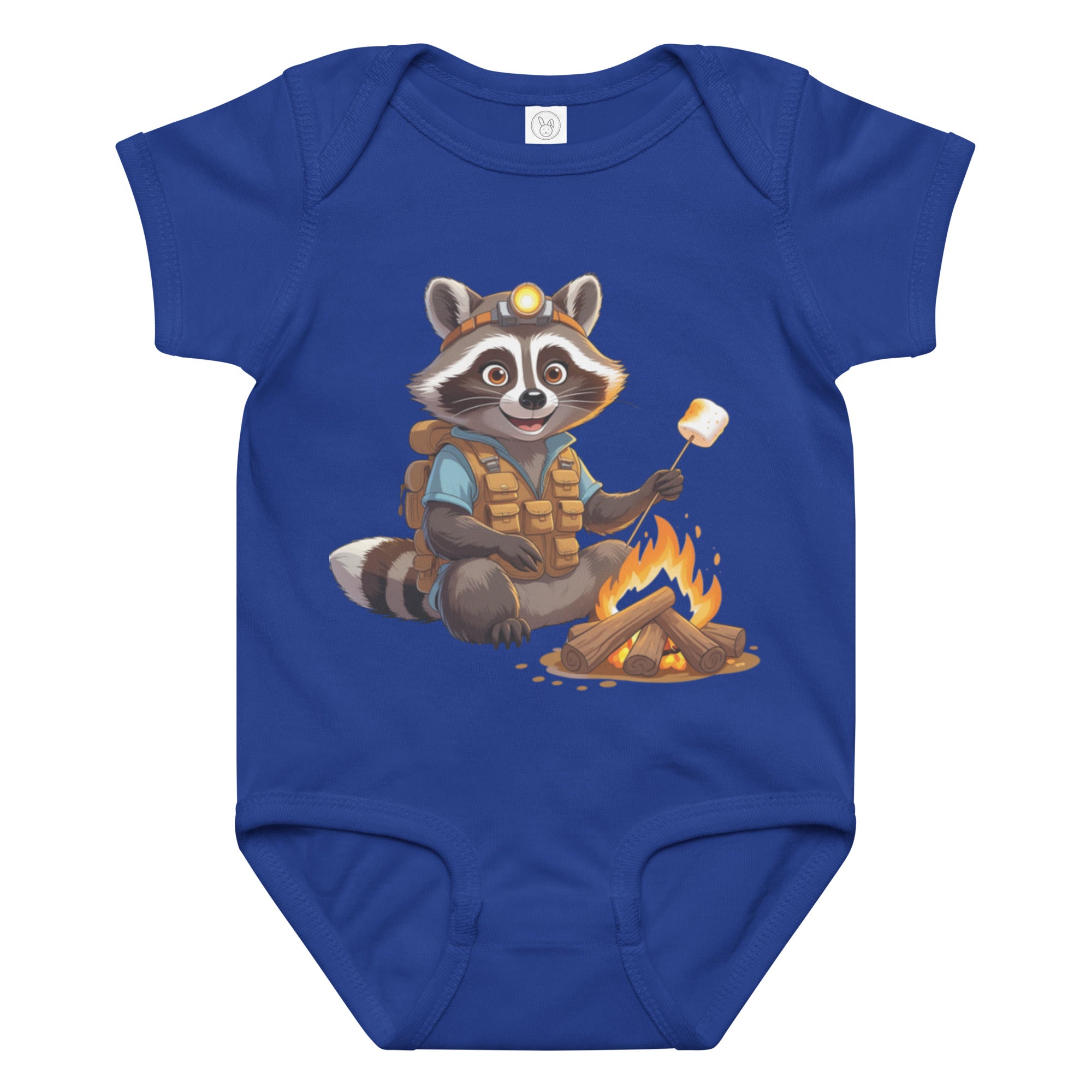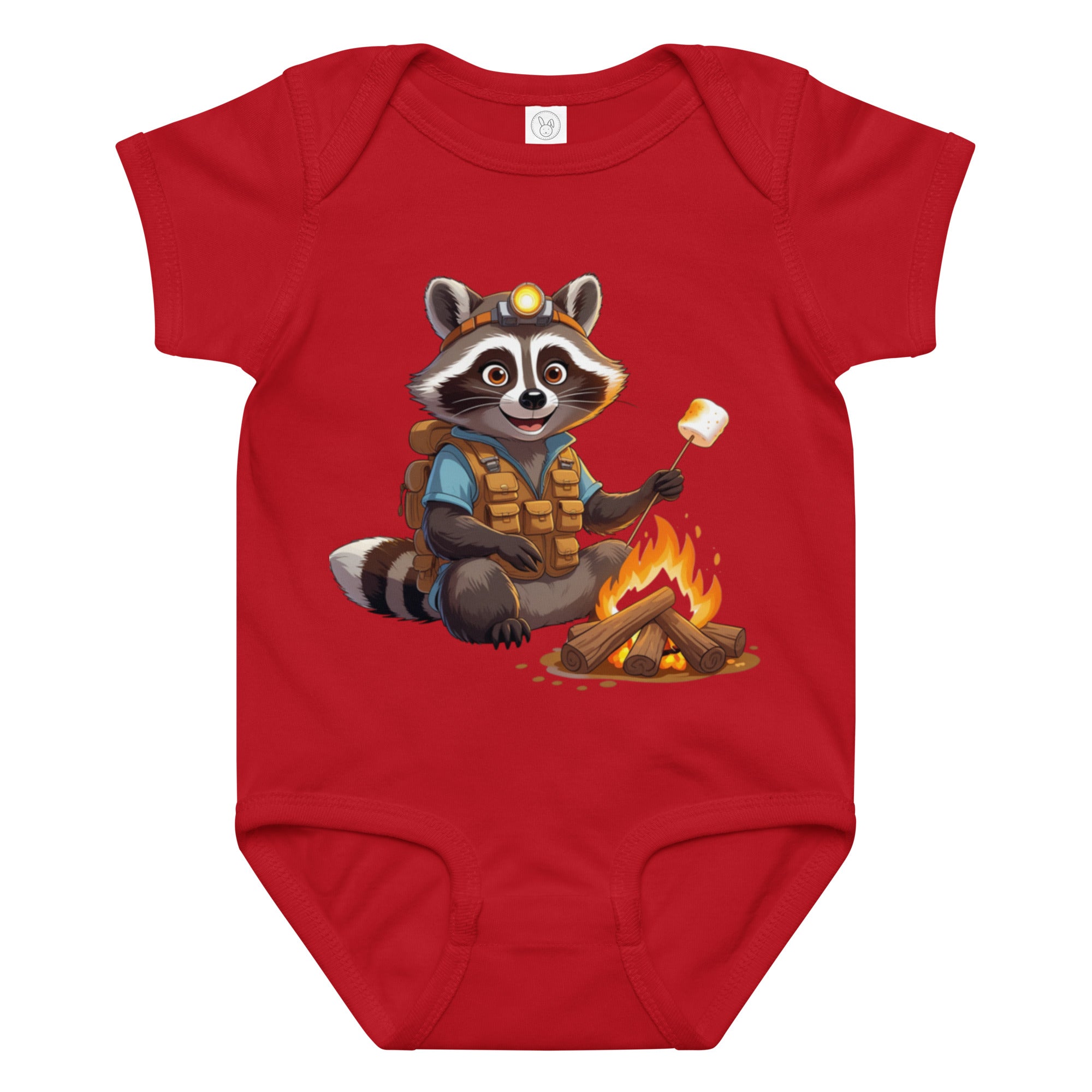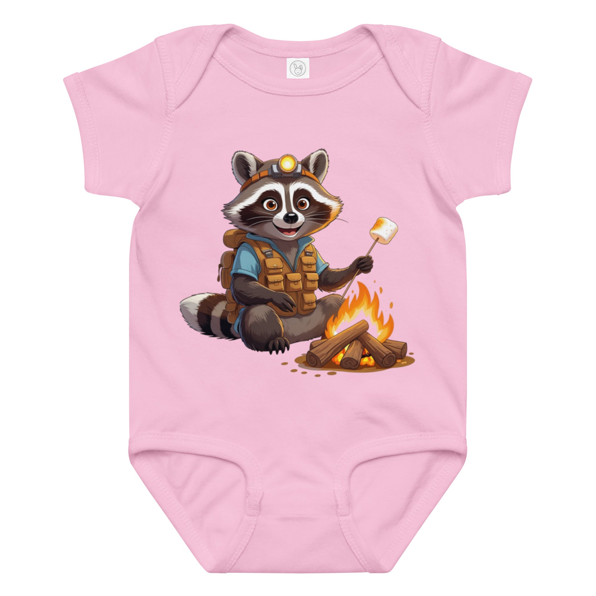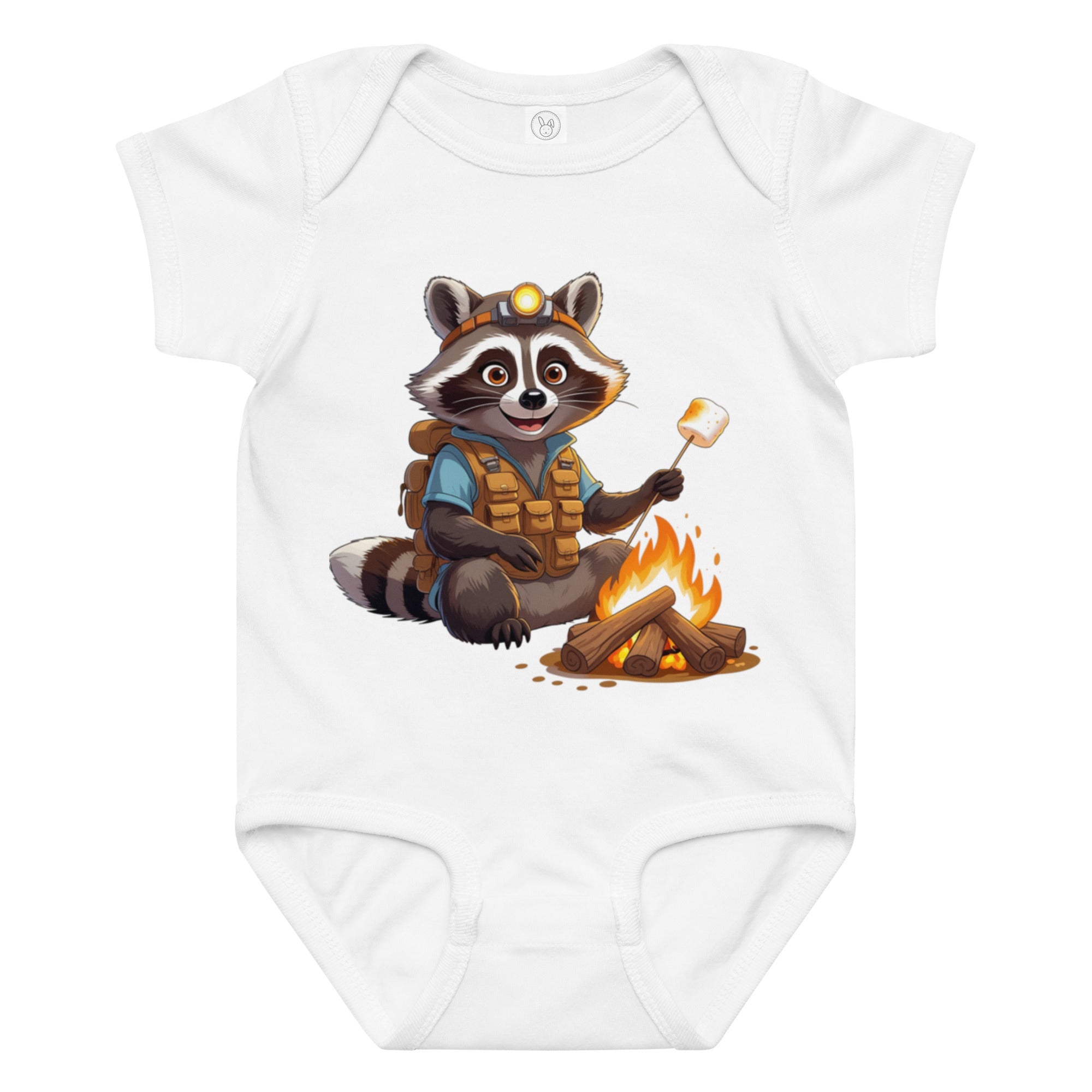 Spark some cozy vibes with the Campfire Raccoon baby bodysuit! Featuring a cute raccoon camper in a vest and headlamp,...