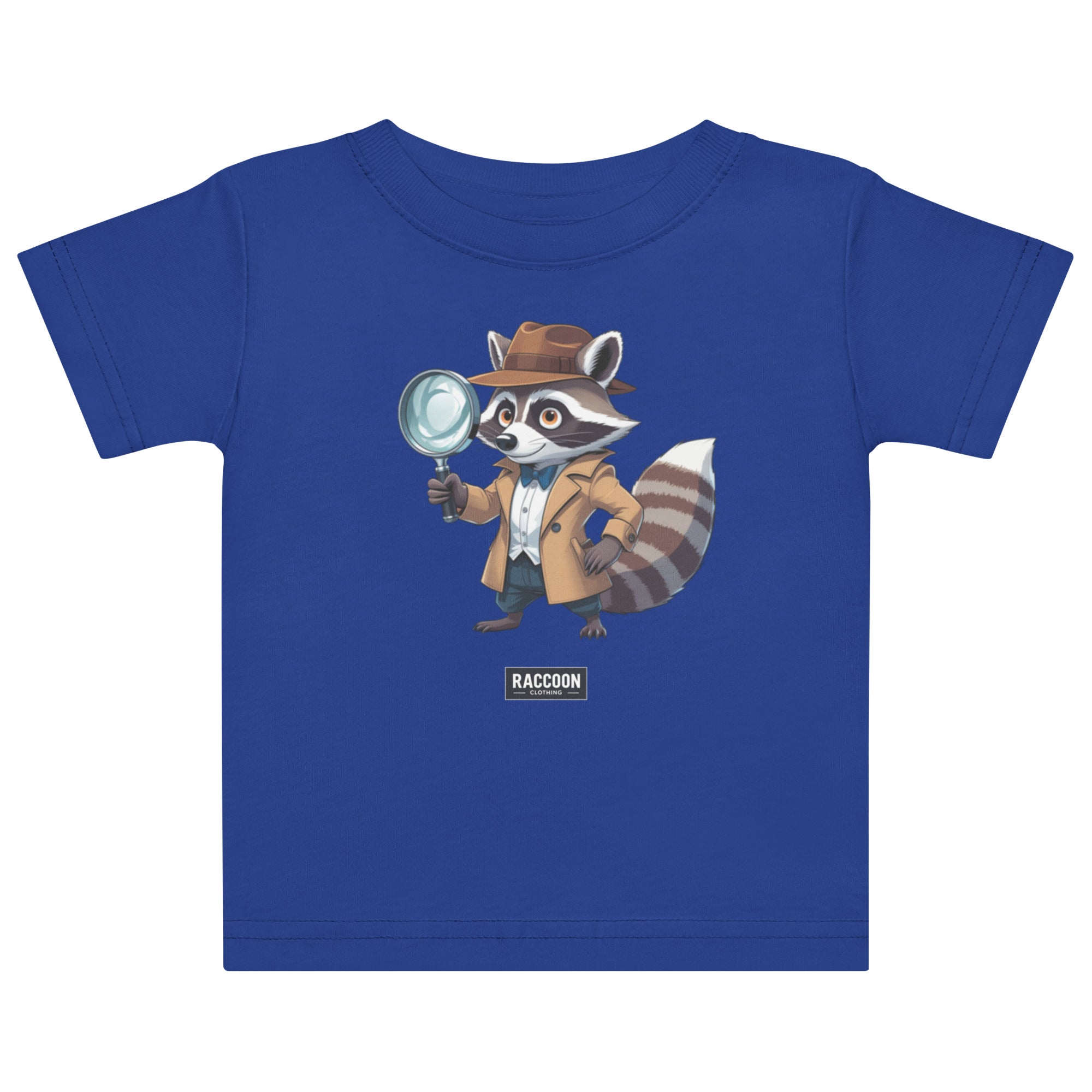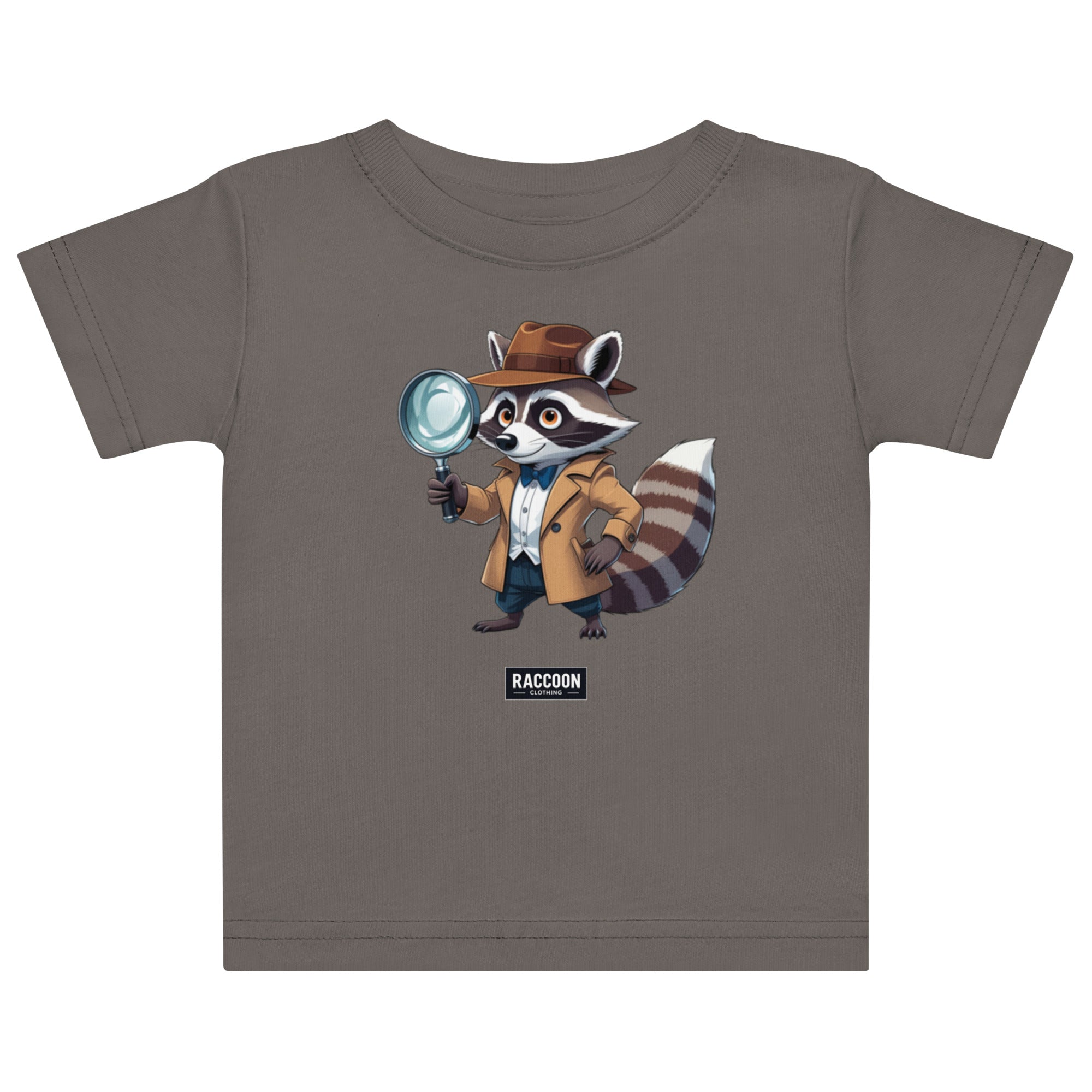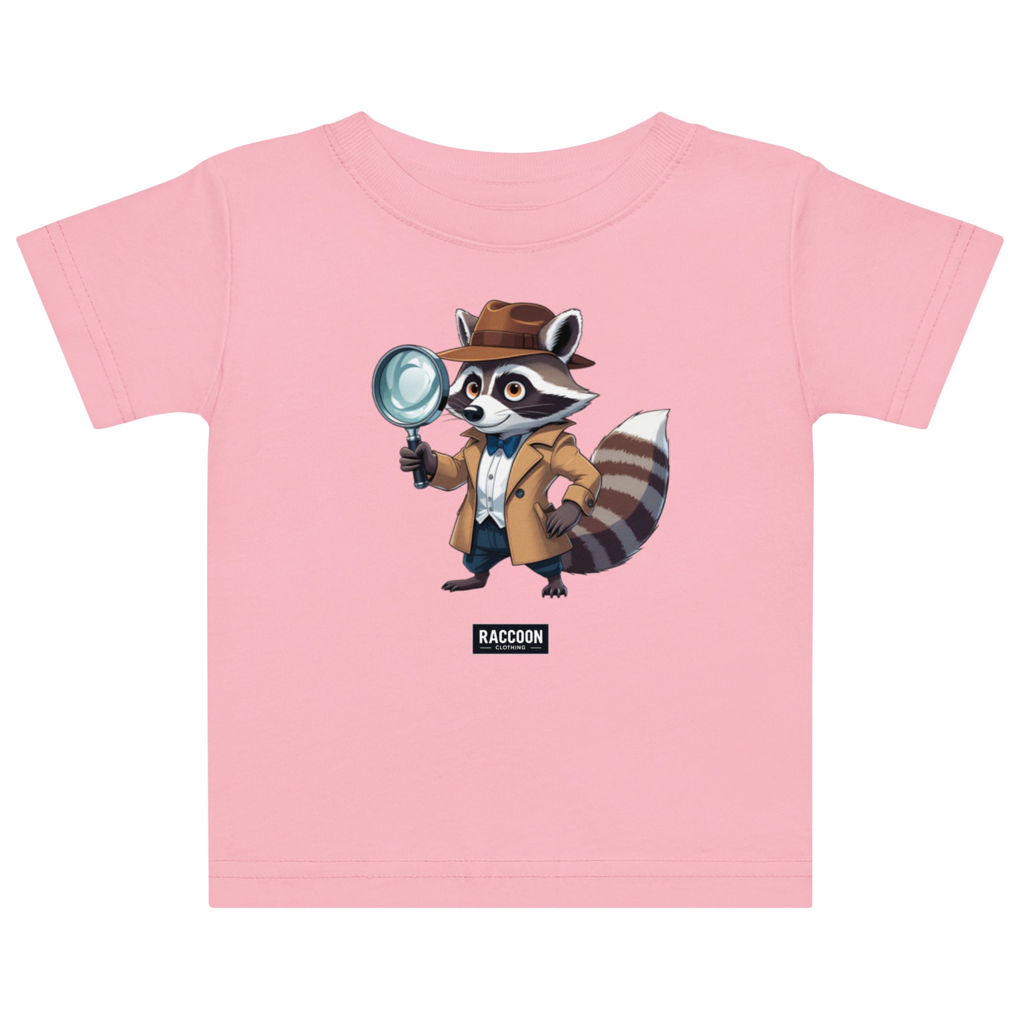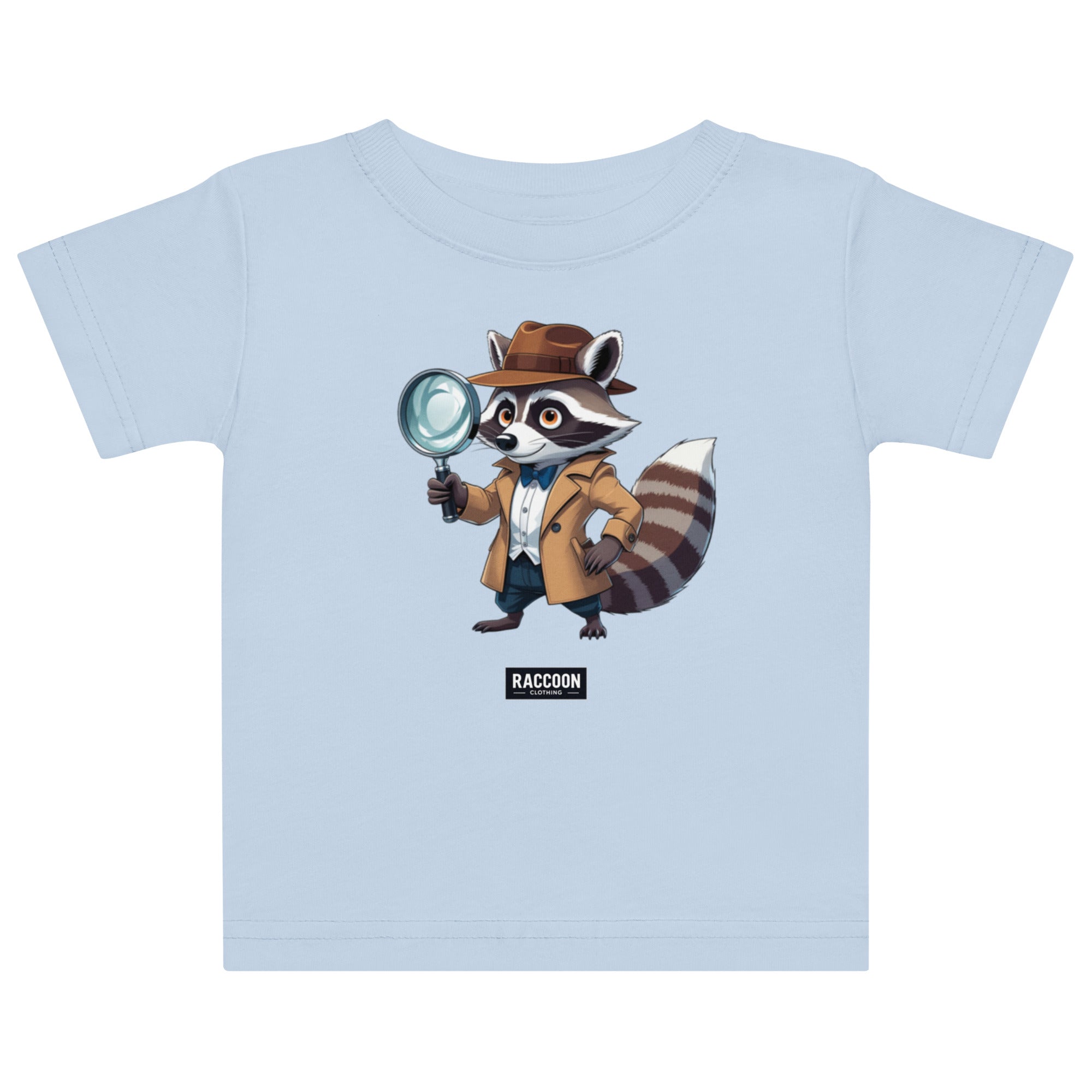 Tiny clues and big cuteness—introducing the Detective Raccoon Babies Tee! Featuring a clever raccoon in a trench coat, fedora, and magnifying glass in paw, this design brings mystery and charm to your baby's everyday look. Perfect for little ones who are always curious and on the move!