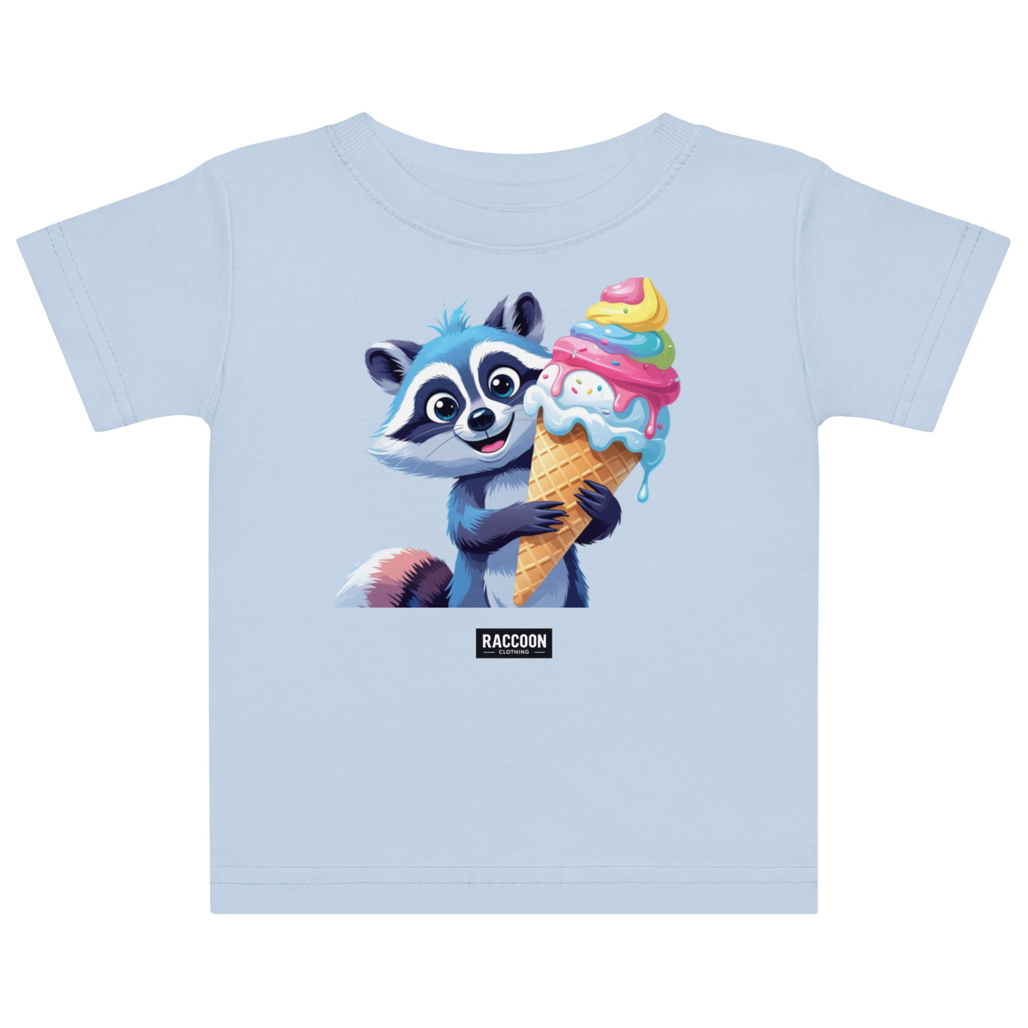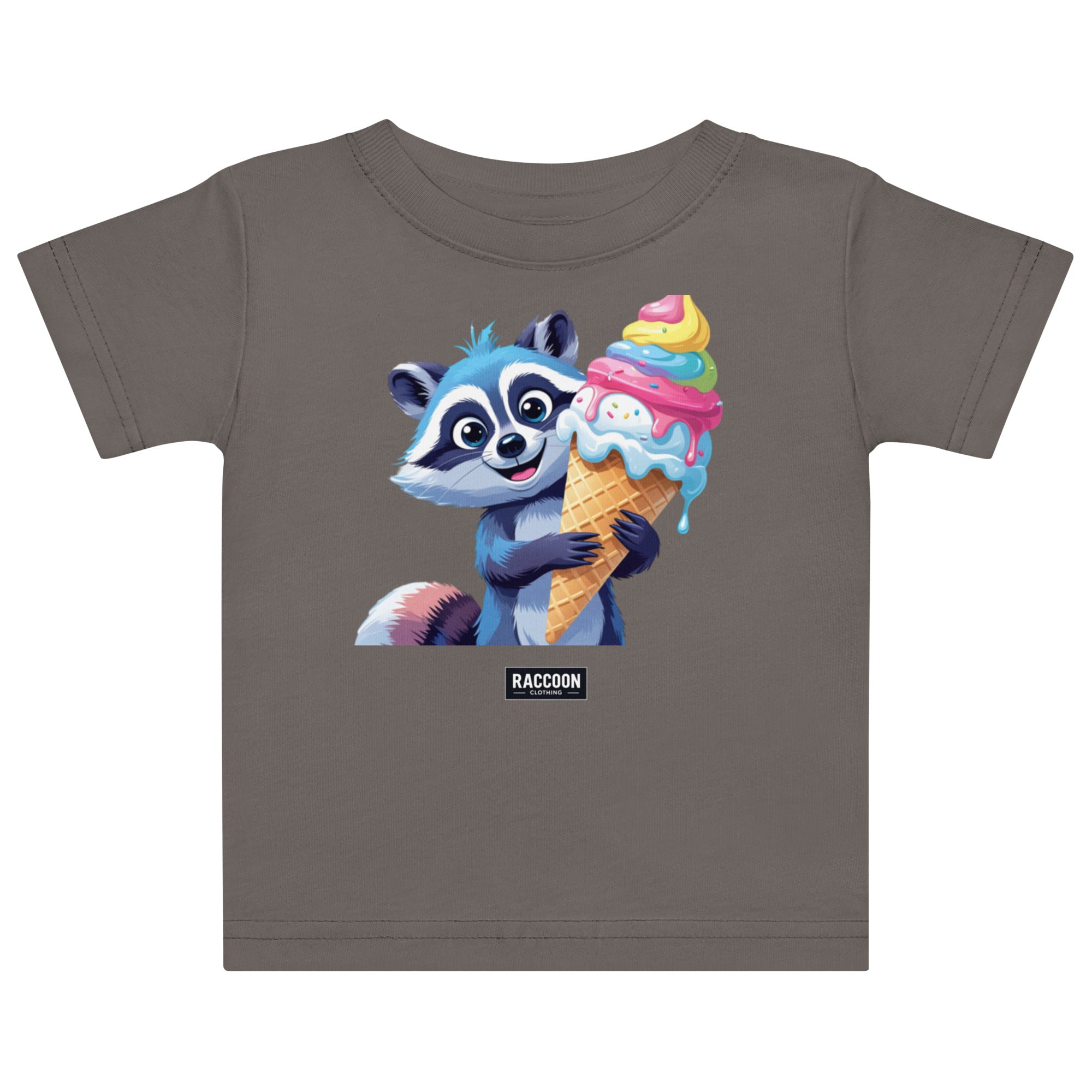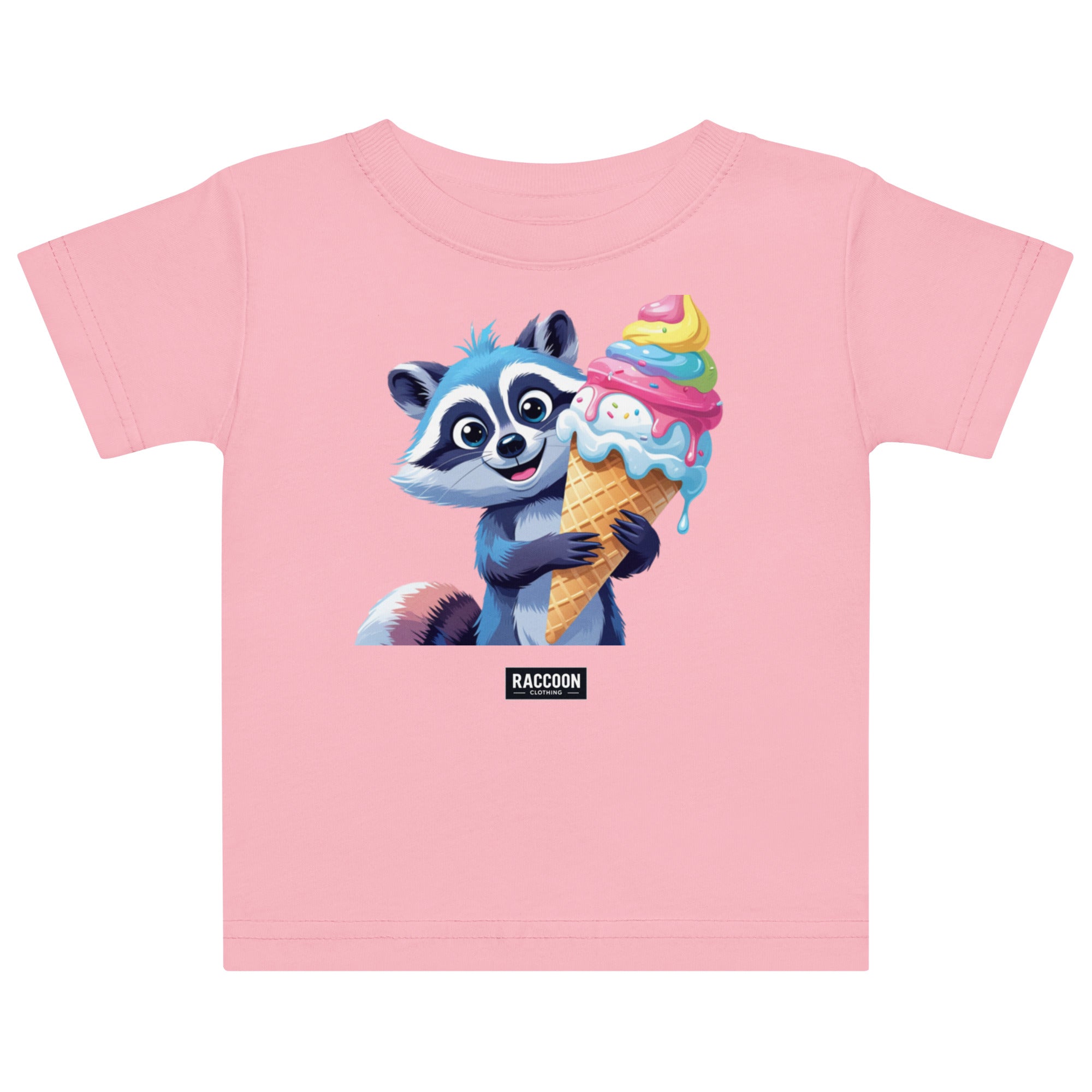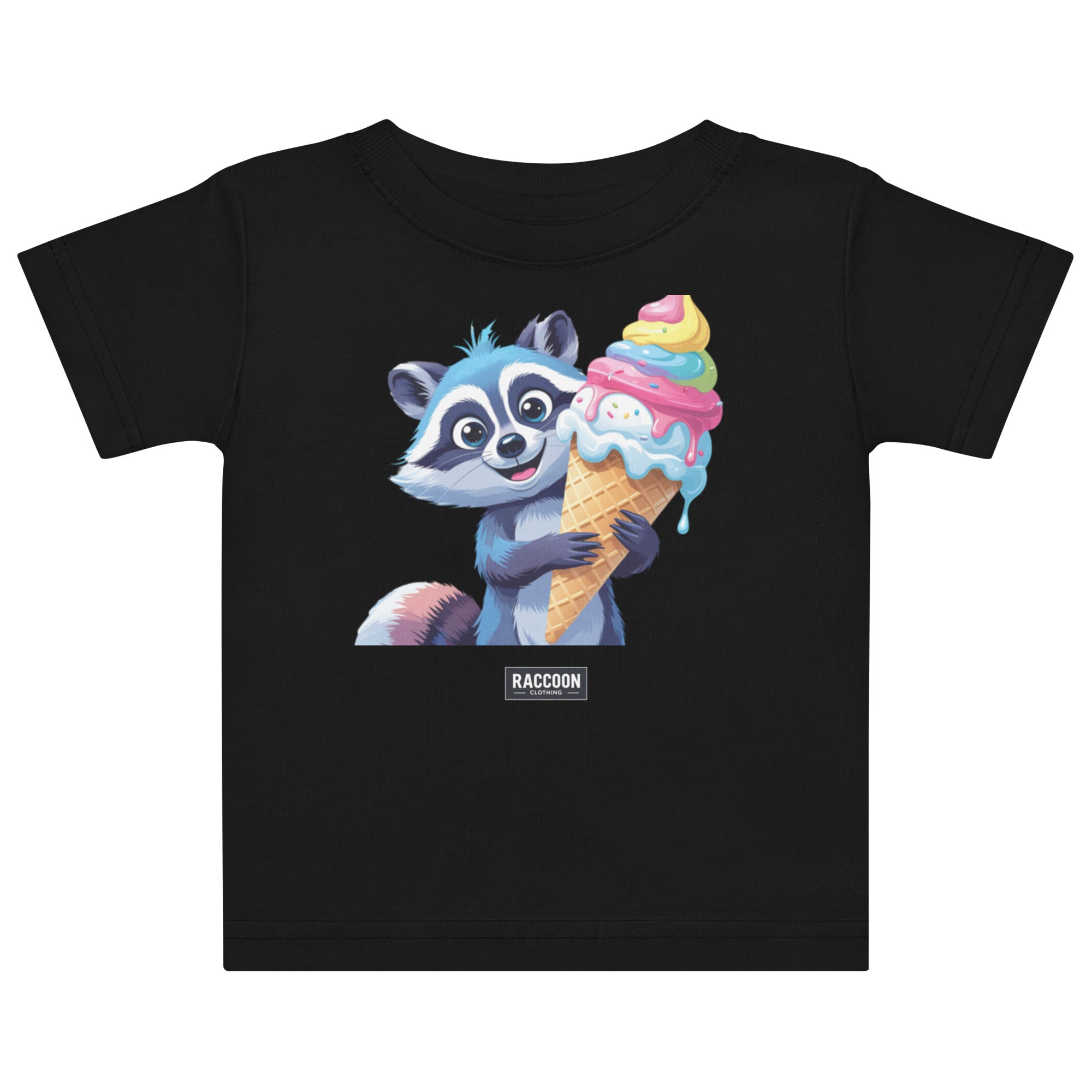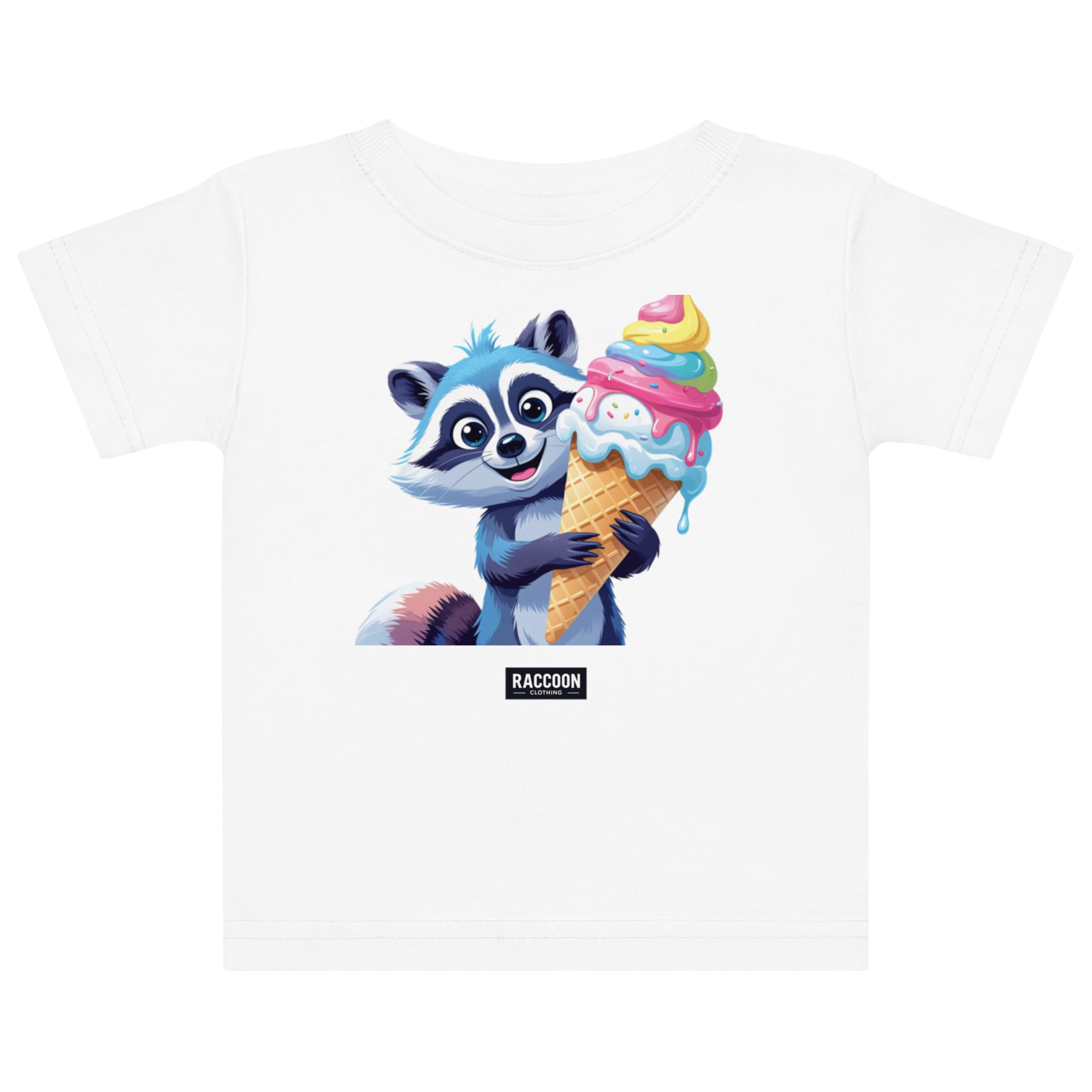 Serve up smiles with the Ice Cream Raccoon Babys Tee! Featuring a cheerful raccoon hugging a gigantic, rainbow-colored ice cream...