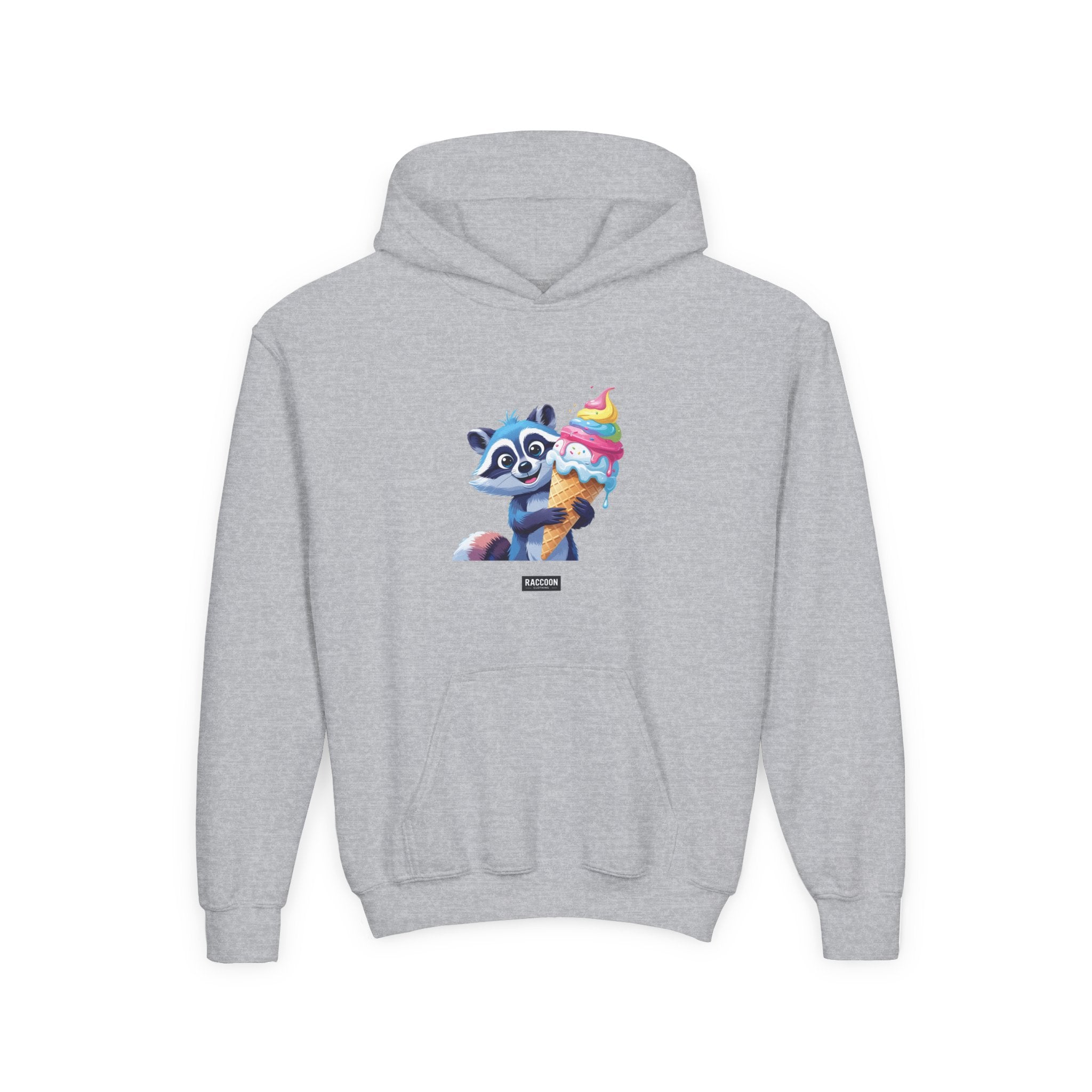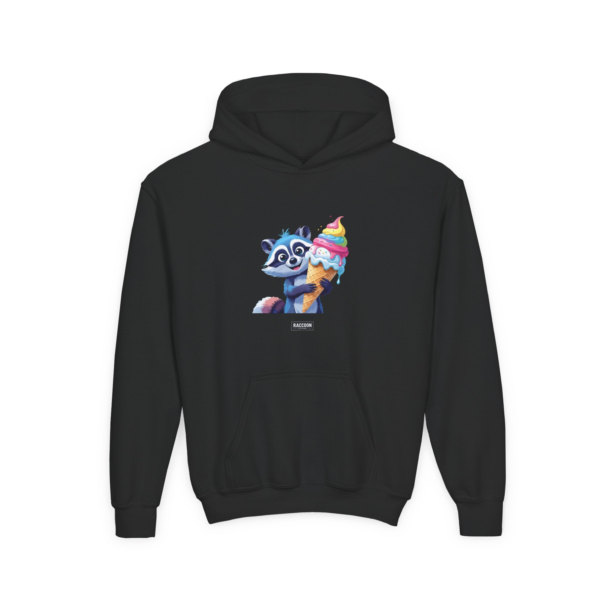 This delightful design features a bright-eyed raccoon hugging a towering rainbow ice cream cone—melting, drippy, and packed with pastel charm. Perfect for summer vibes, dessert fans, or anyone with a love for playful fashion.