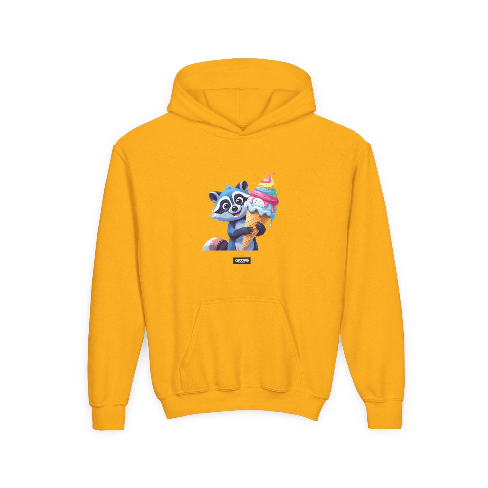 This delightful design features a bright-eyed raccoon hugging a towering rainbow ice cream cone—melting, drippy, and packed with pastel charm....
