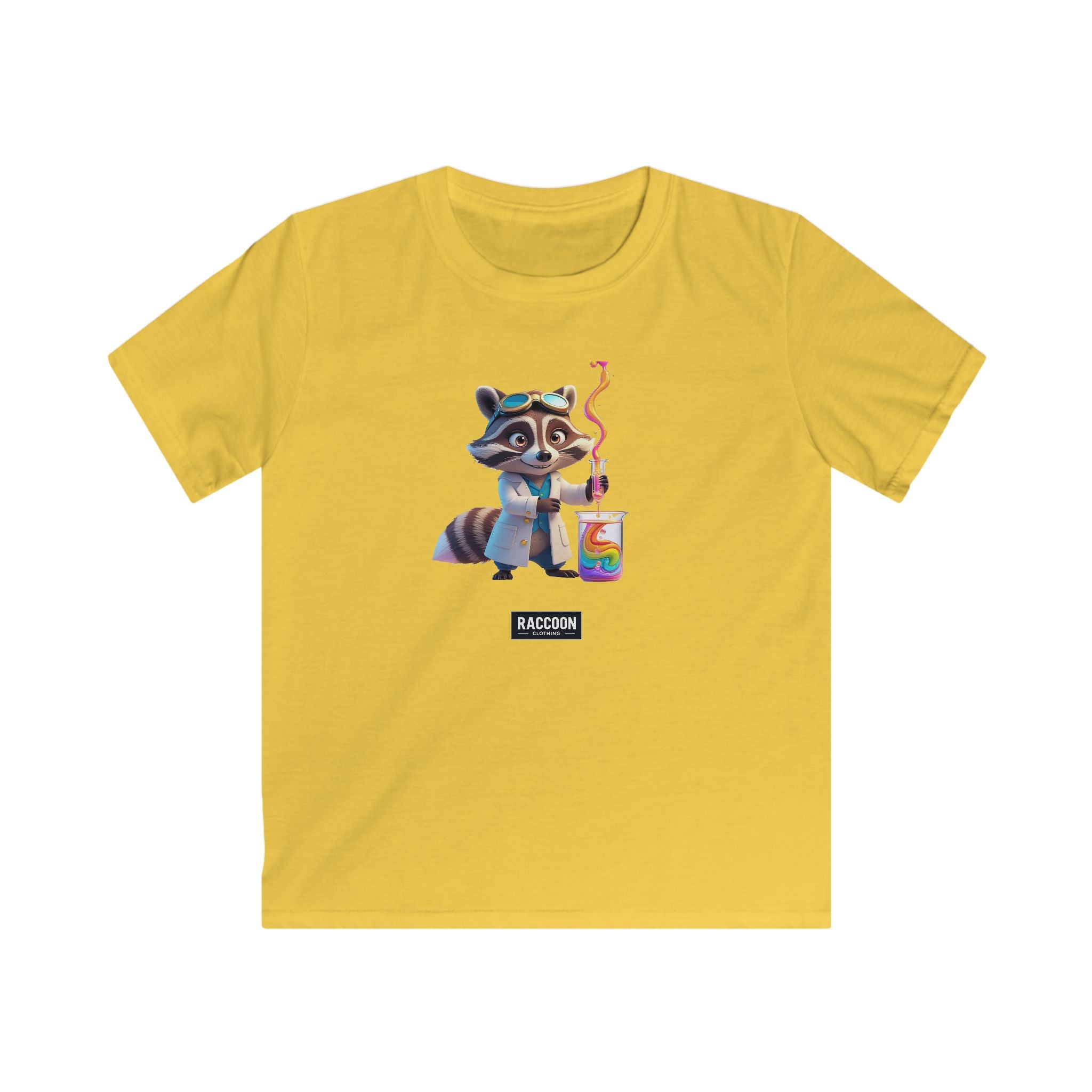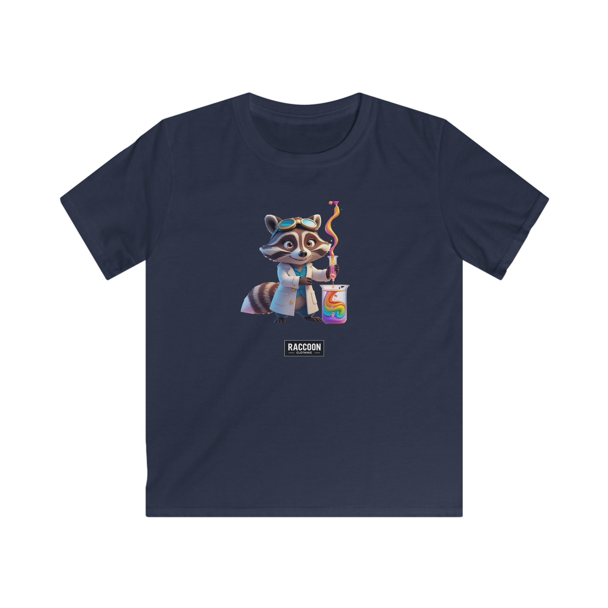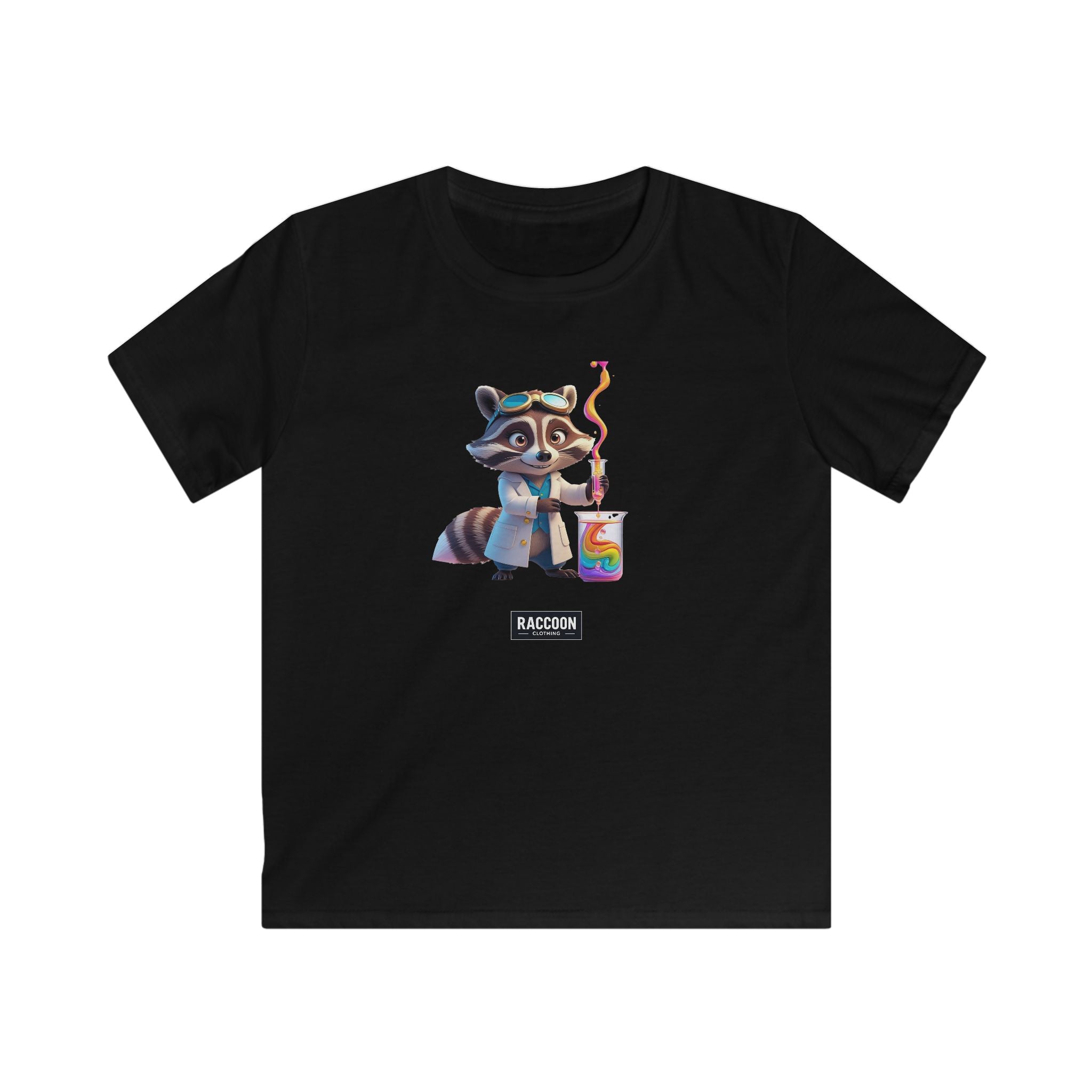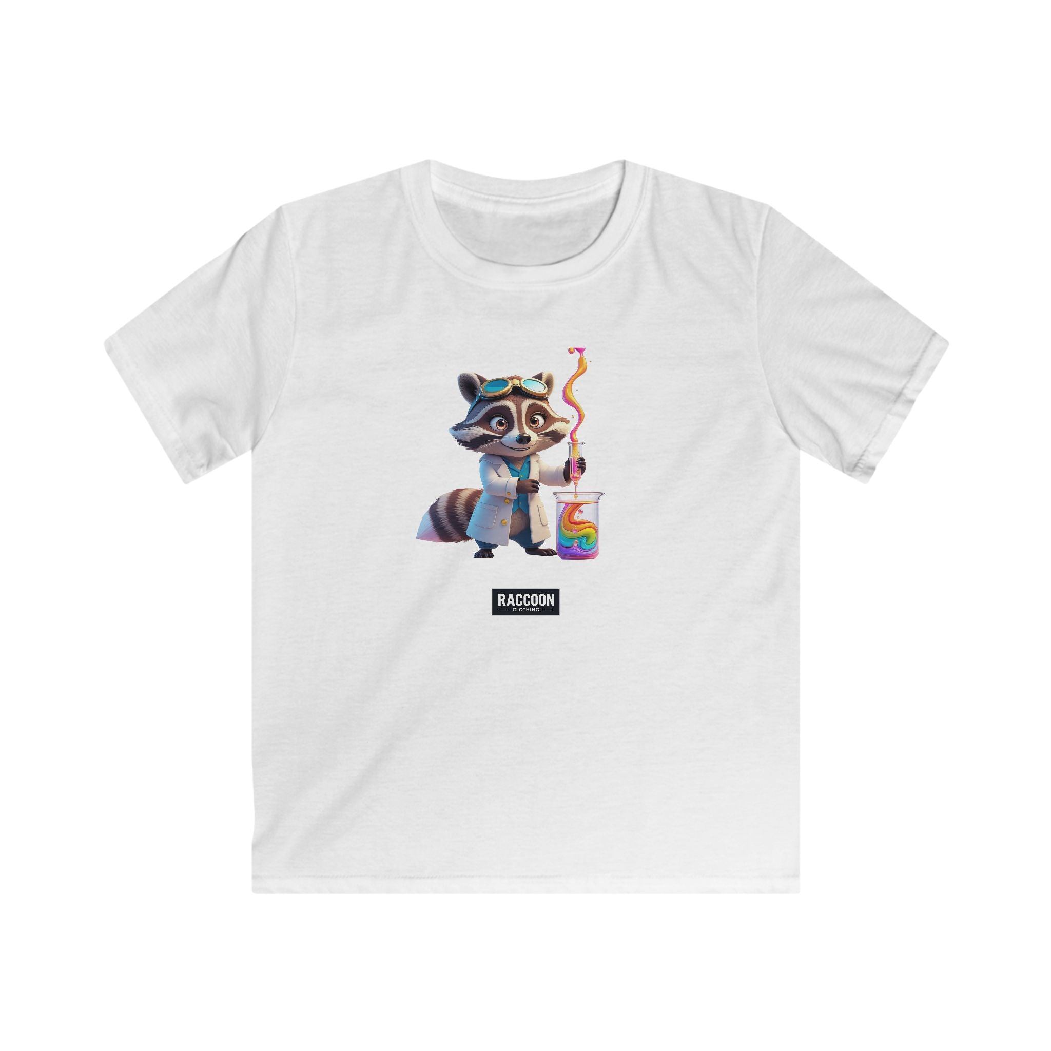 Unleash your inner genius with our Lab Raccoon T-Shirt, featuring an adorable raccoon scientist brewing up some vibrant rainbow chemistry....