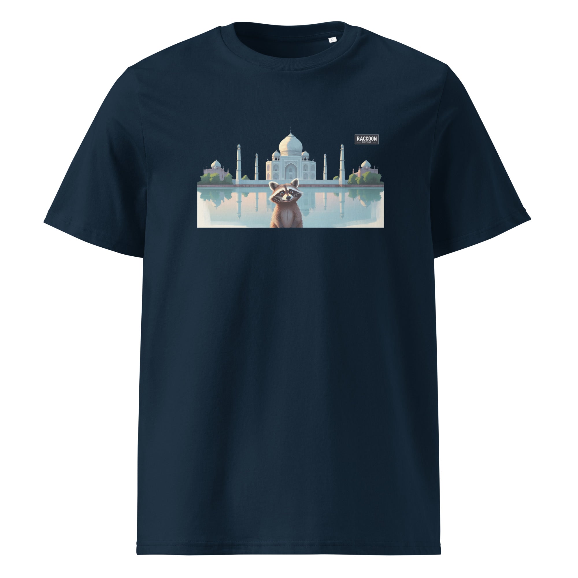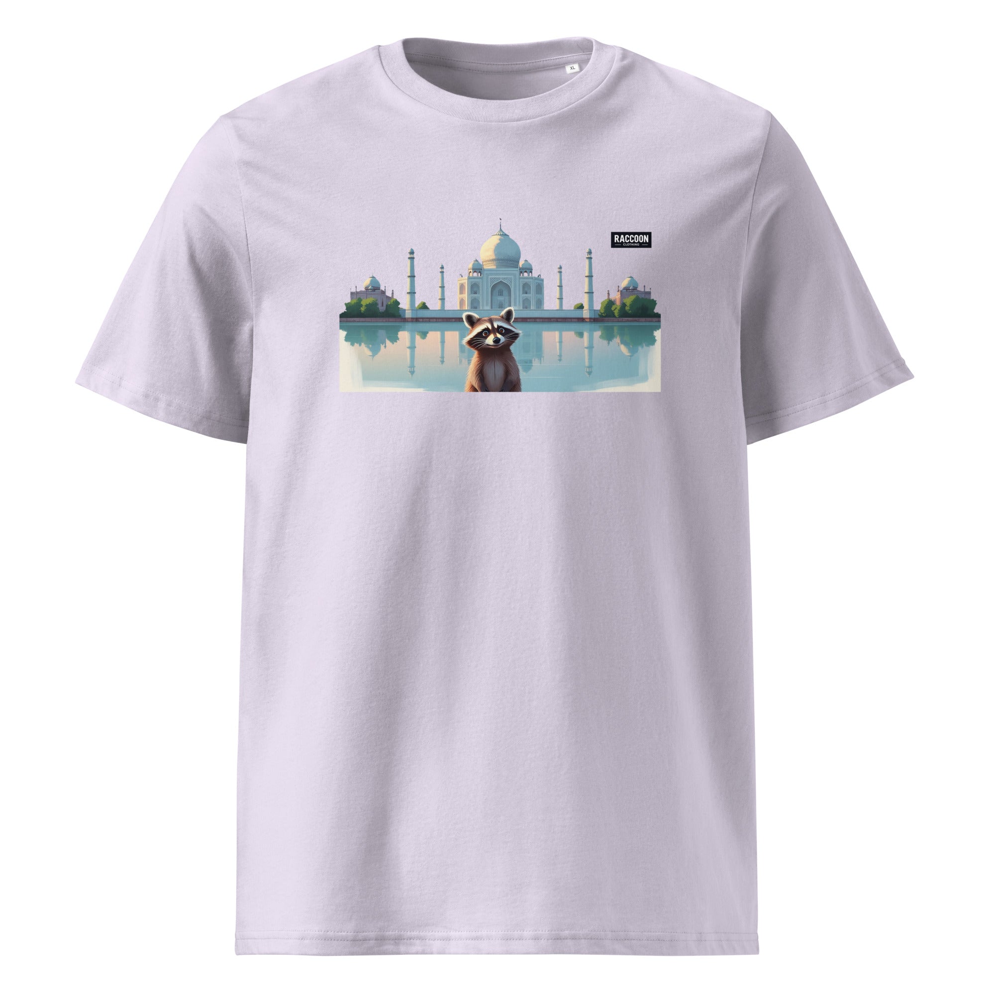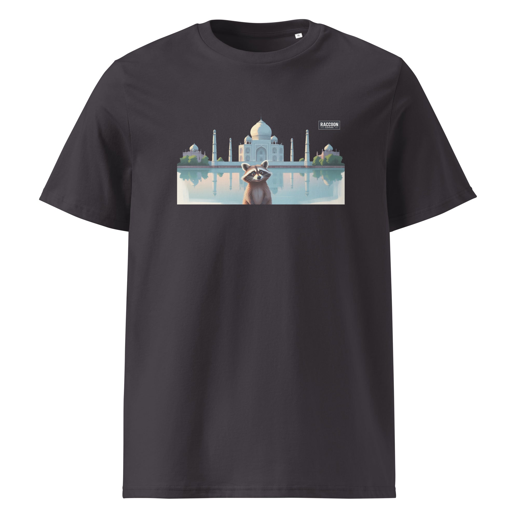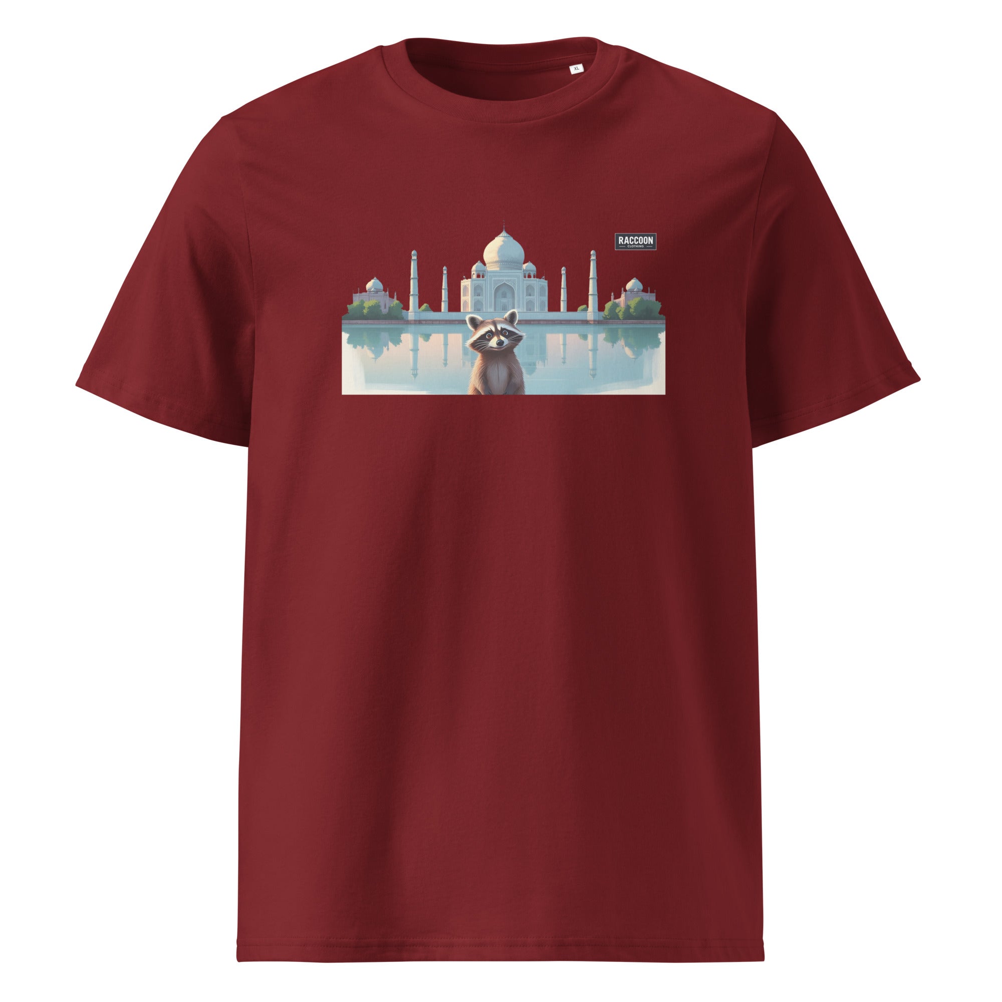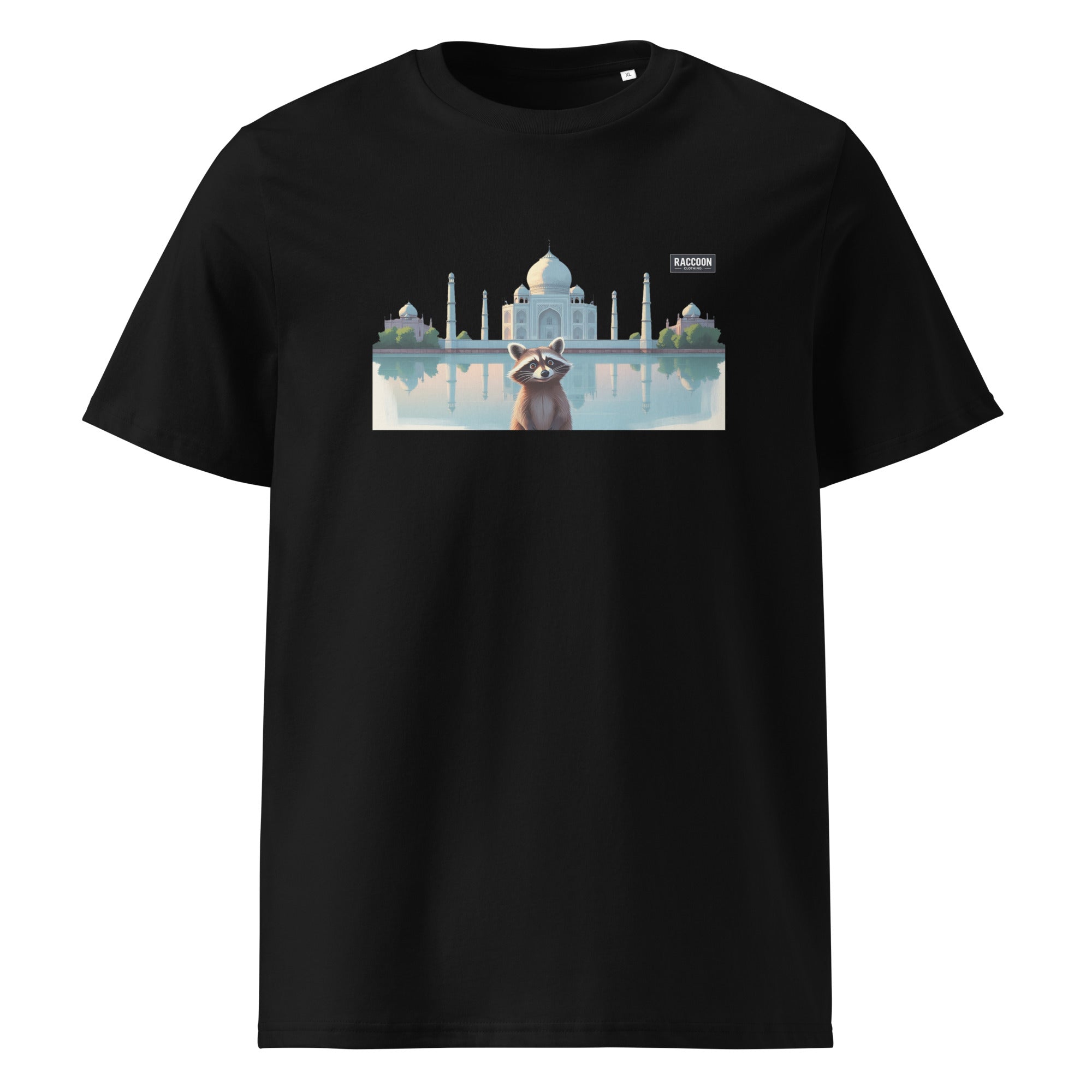 A wide-eyed raccoon gazes up at the Taj Mahal, blending playful charm with one of the world’s most iconic landmarks....