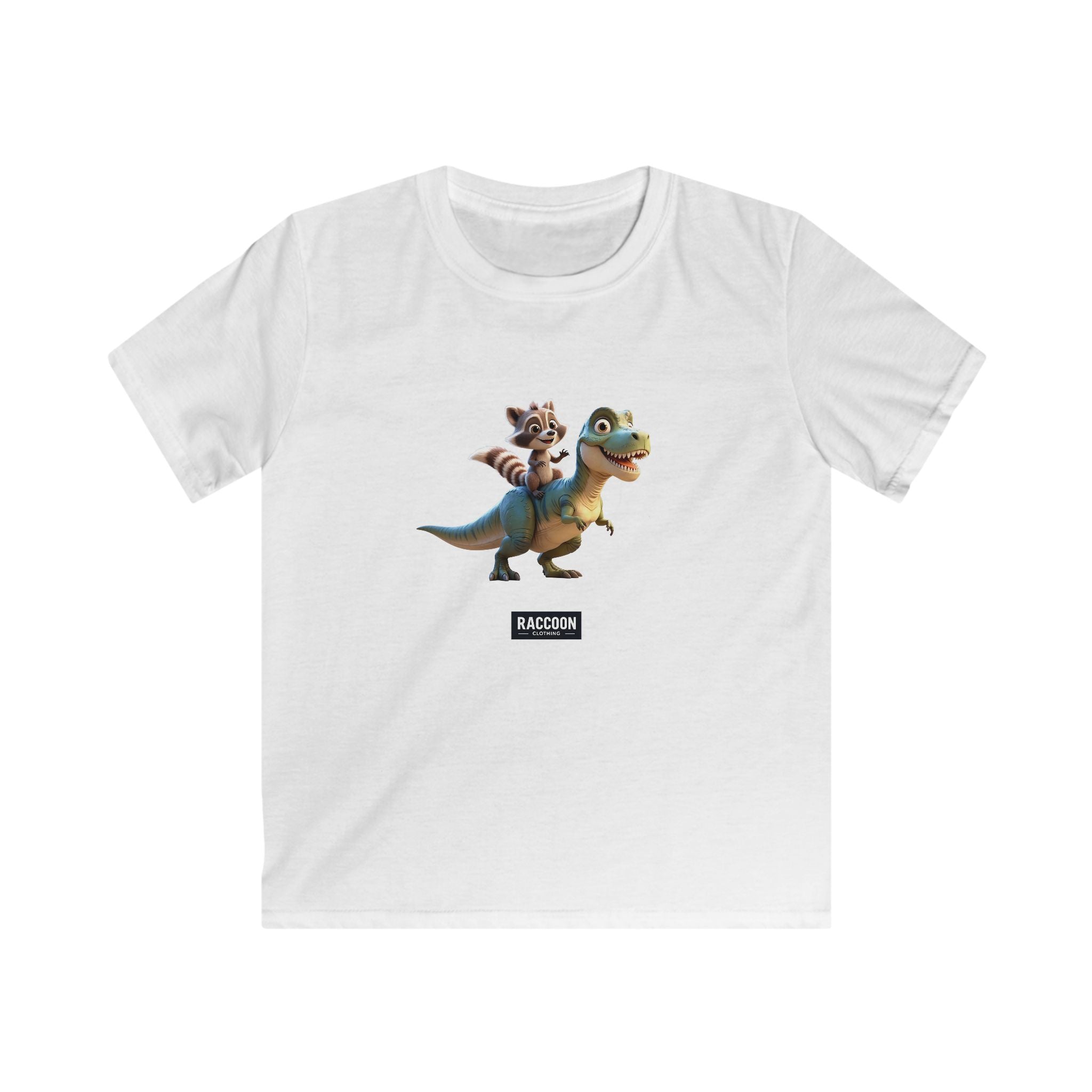 Raccoon Riding T-Rex - Kids T-Shirt