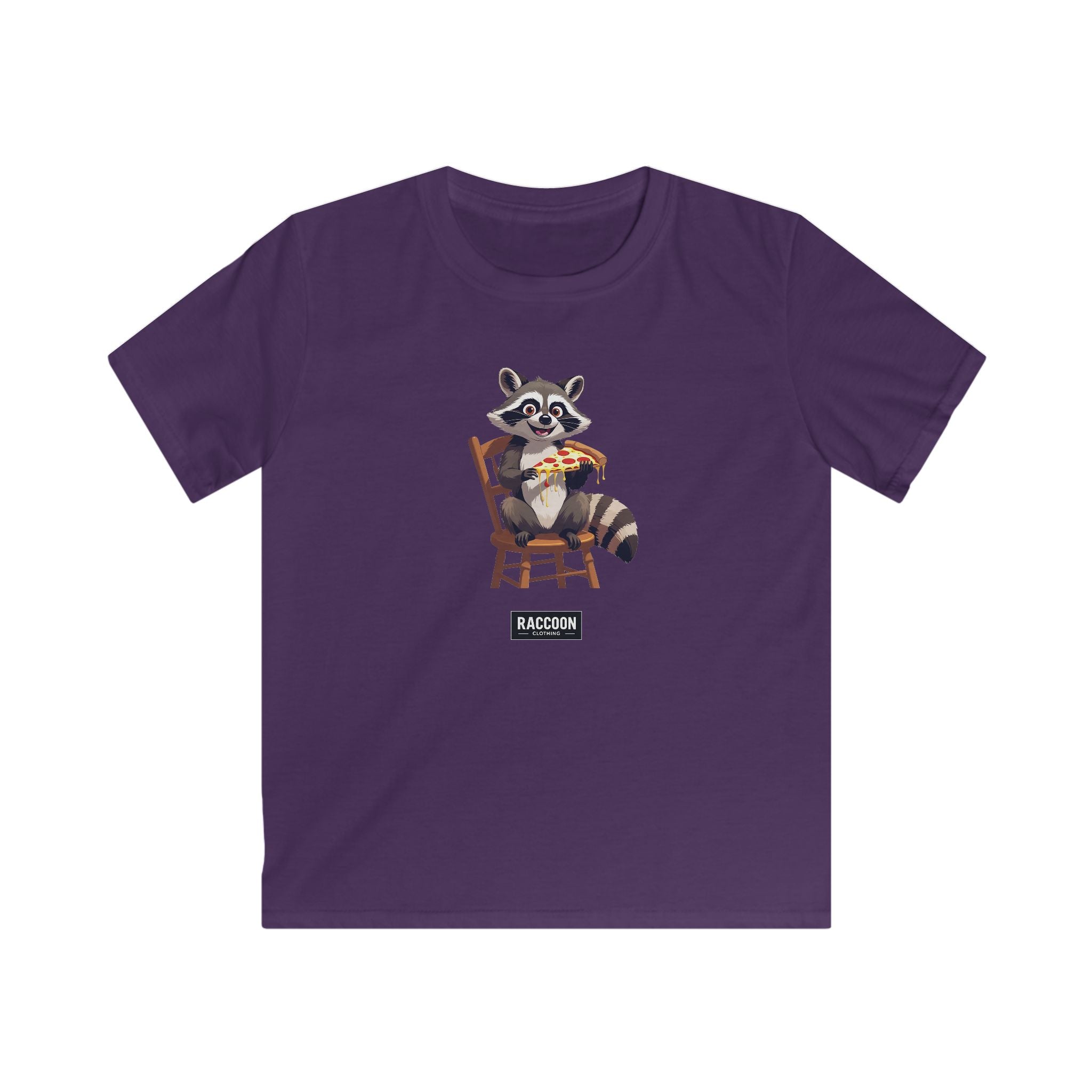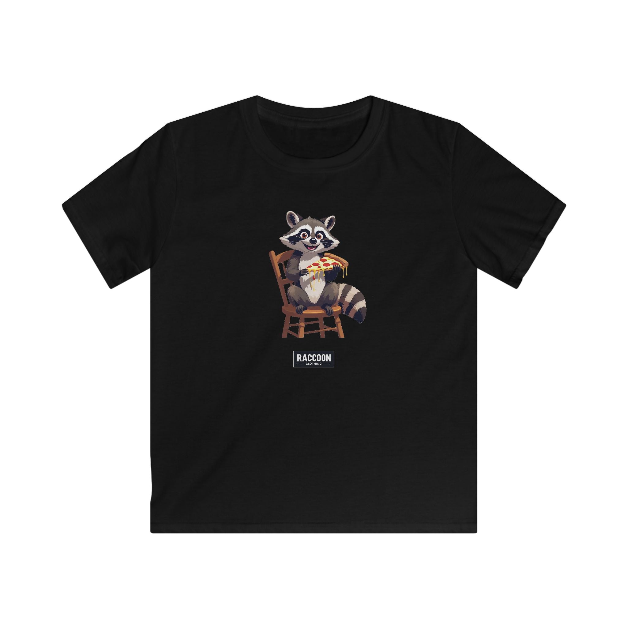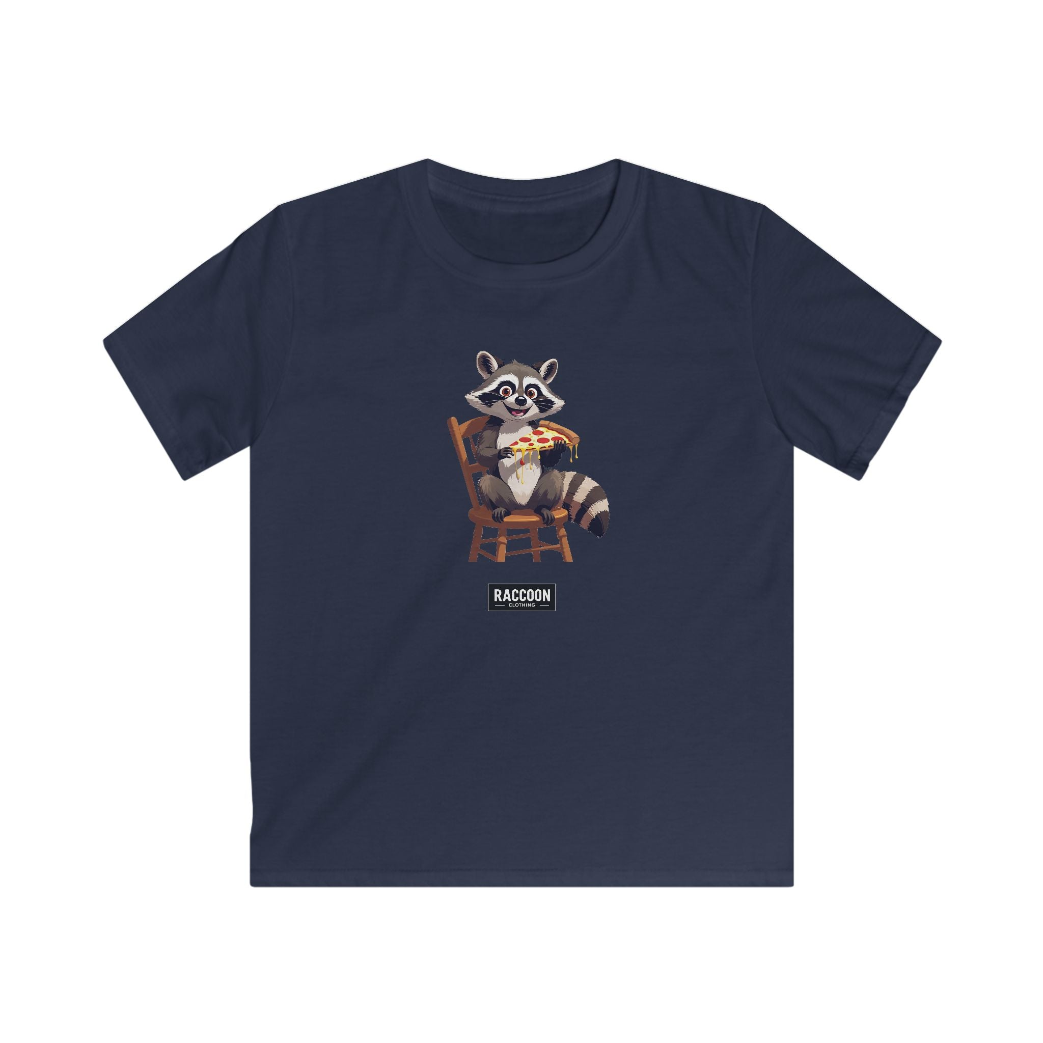 This irresistibly cute design features a chubby raccoon happily munching on a cheesy pizza slice while sitting on a chair,...